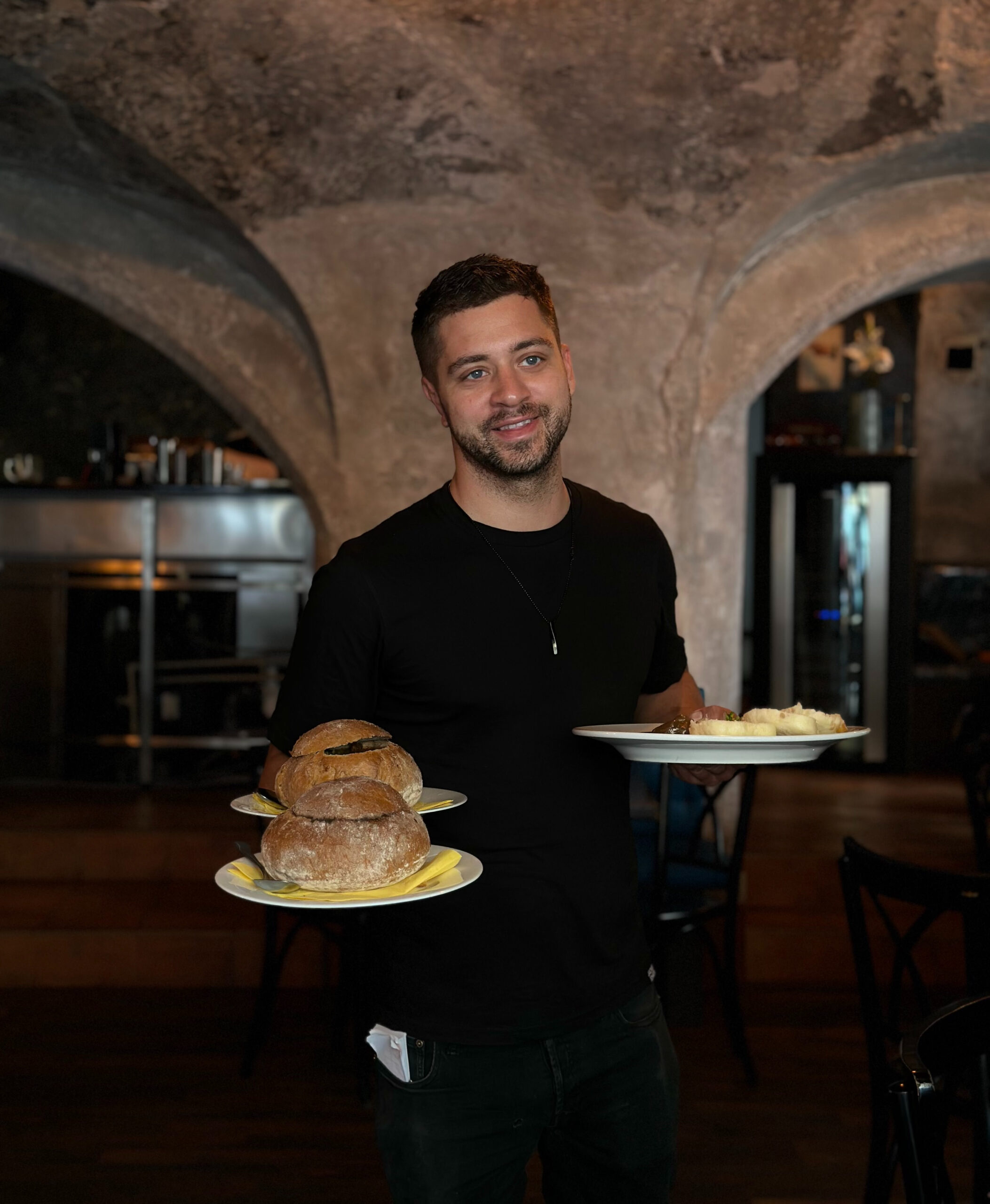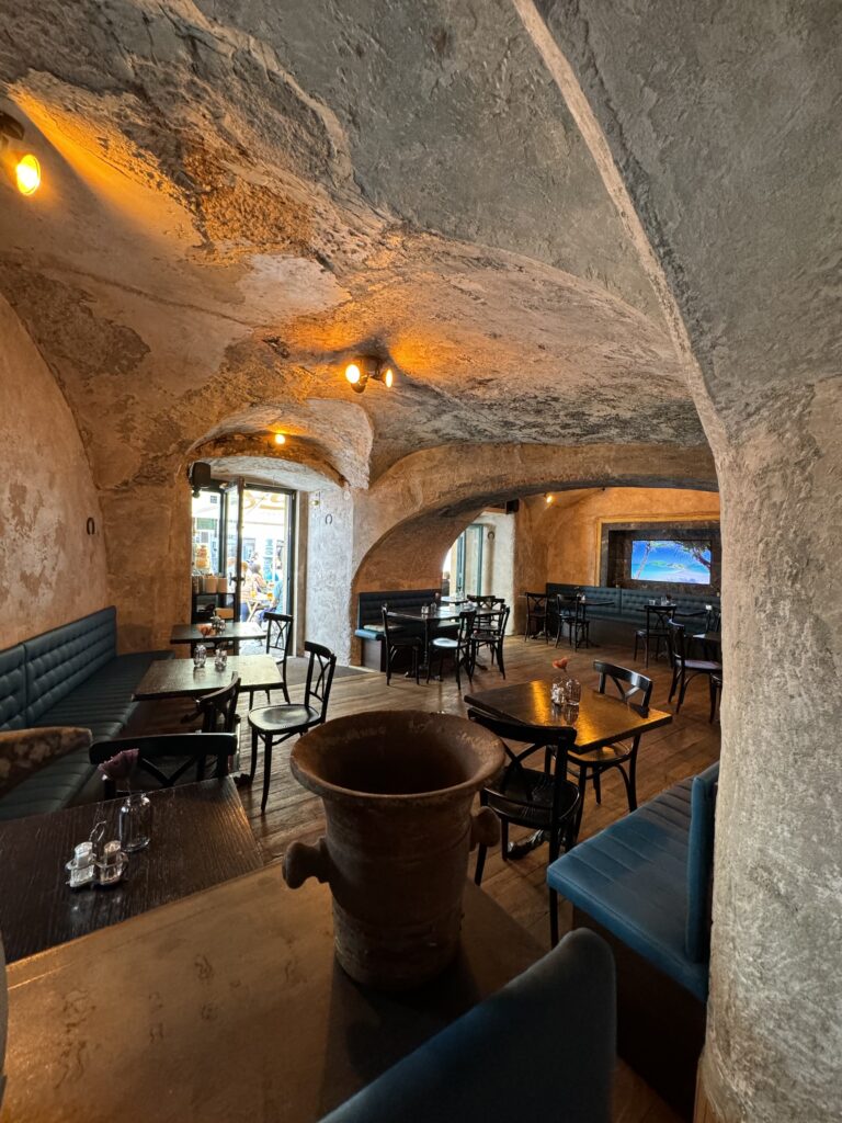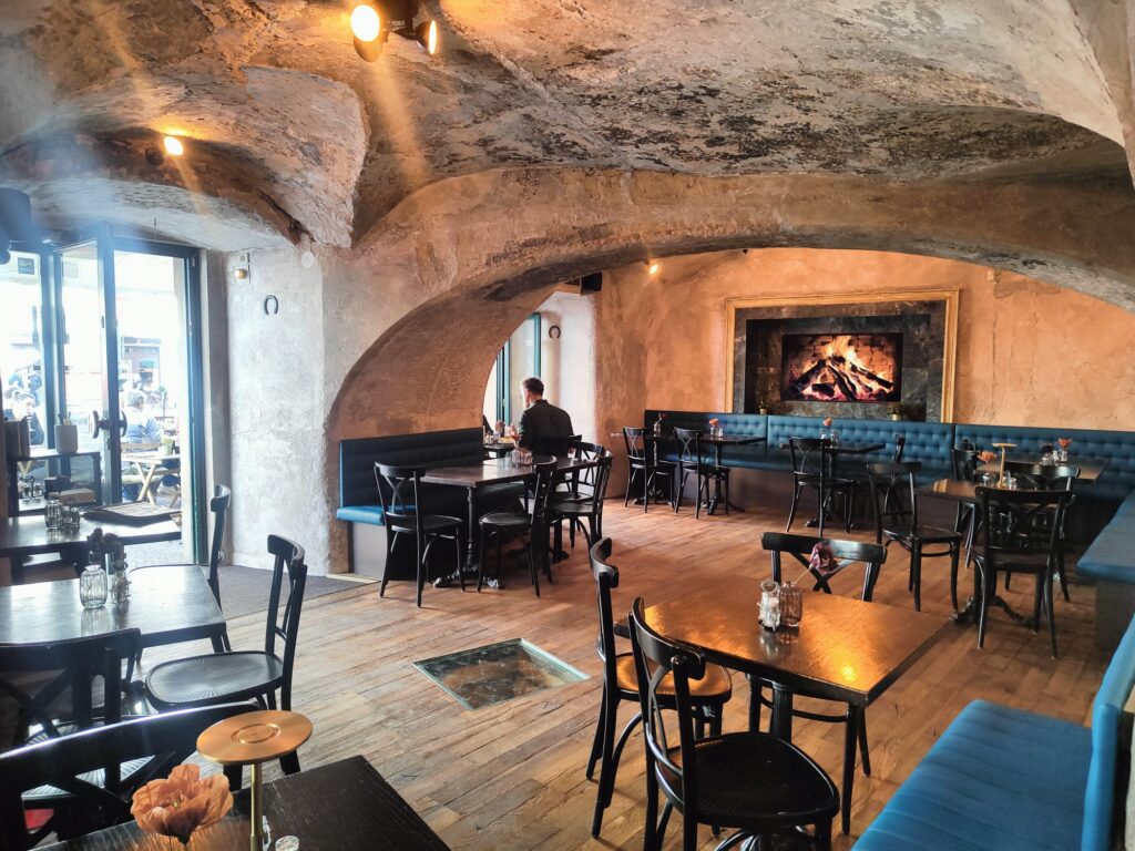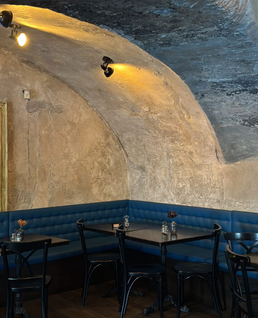 Historický interiér – Restaurace Melichar Trost’s sídlí v historickém domě, kde si můžete vychutnat příjemnou atmosféru pod klenutými stropy s unikátním dekorem.