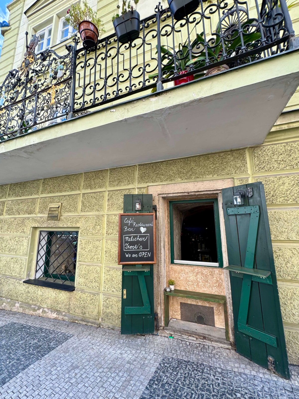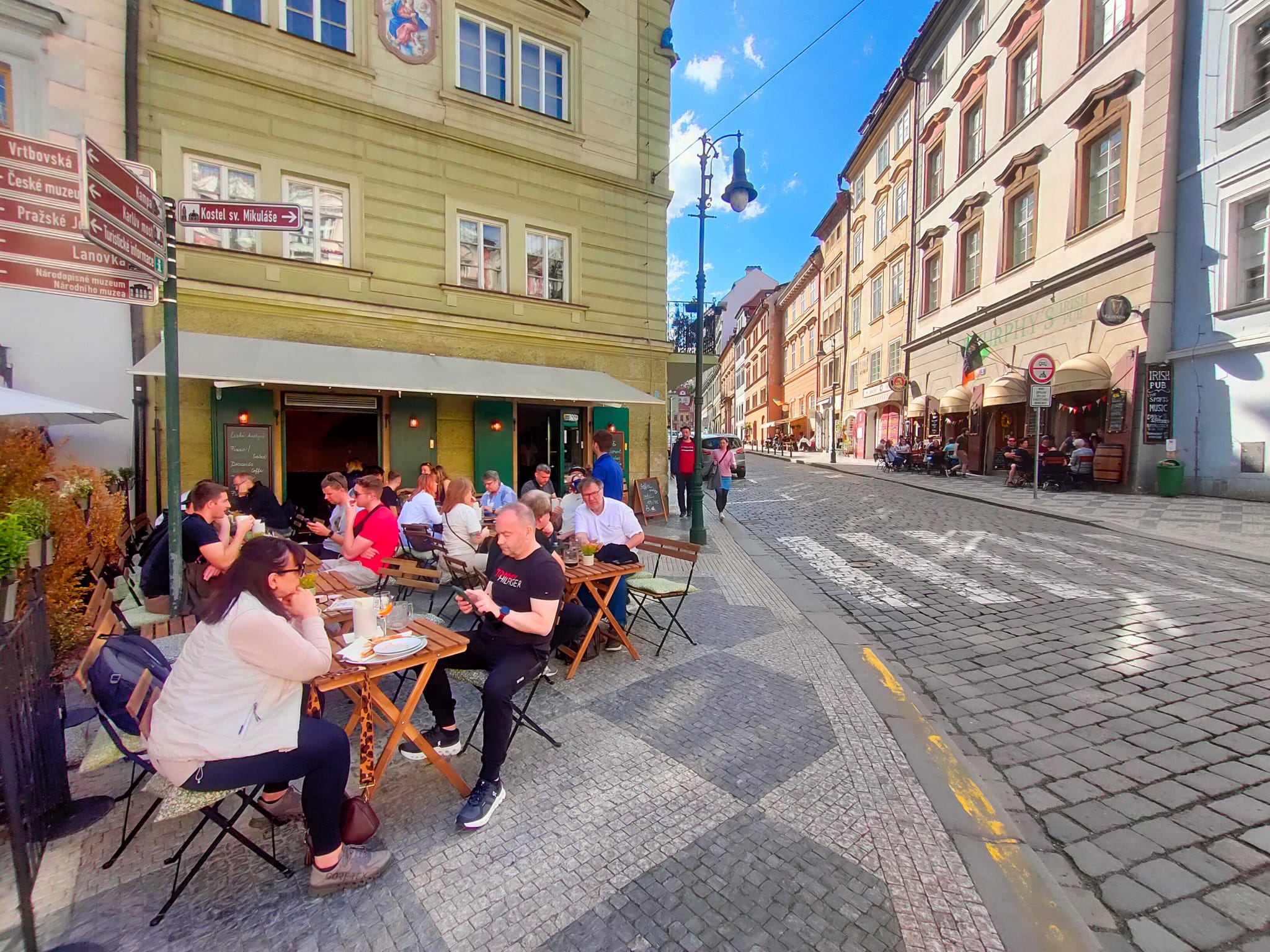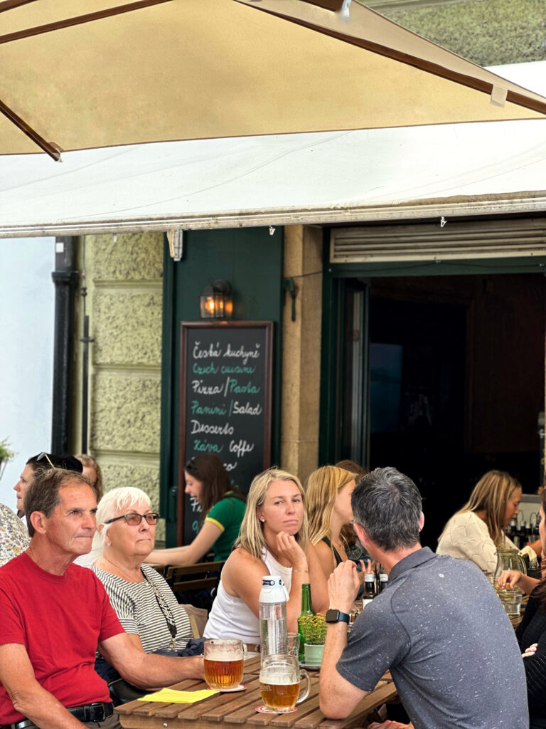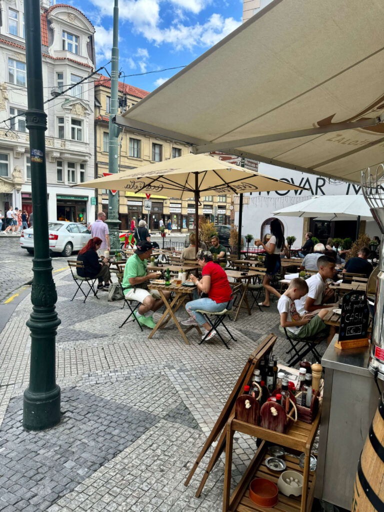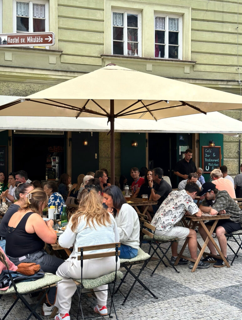 Venkovní zahrádka – Užijte si krásné posezení na zahrádce s výhledem na Malostranské náměstí. Ideální pro odpolední kávu, večerní drinky nebo letní oběd s přáteli.